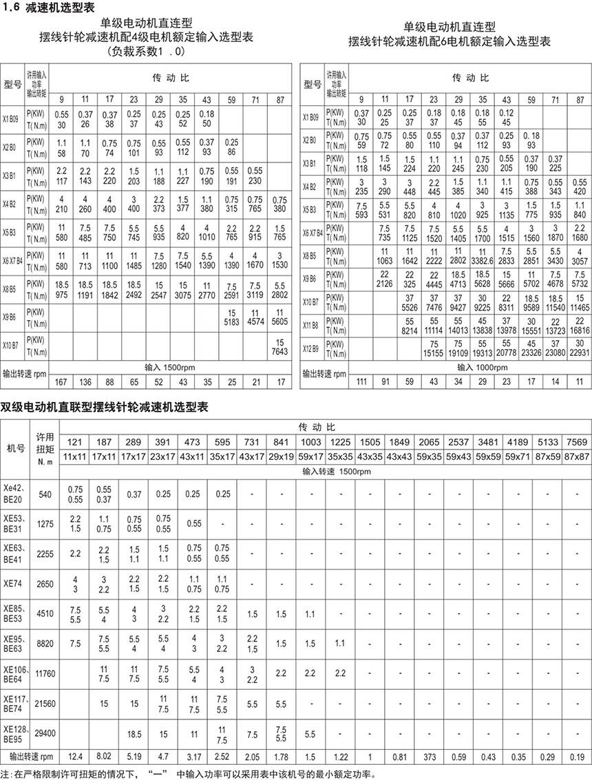 單級傳動速比9~87,兩級傳動121~5133,三級傳動可達5841~6058503,效率在90%以上。