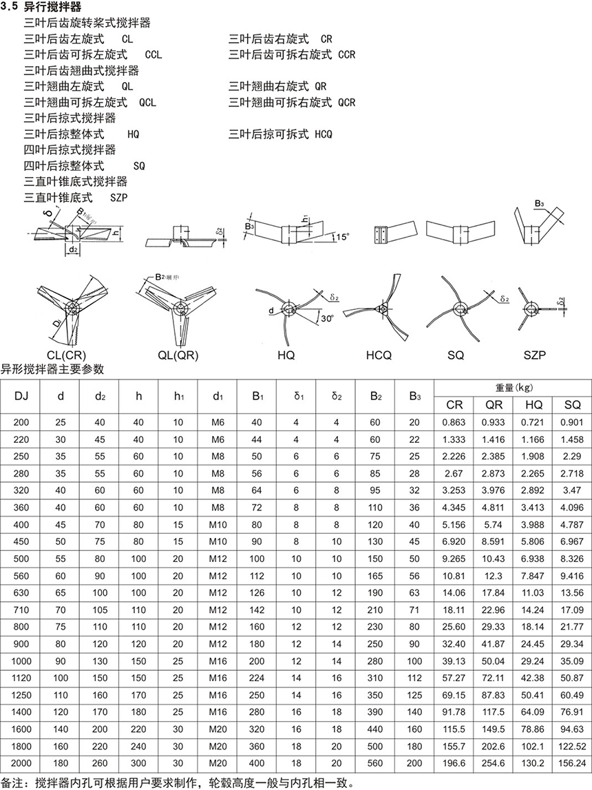近30類,計140多種攪拌器,從常見的(包括已有的HB5標準,SB90標準各種攪拌器)到各種復雜狀或特殊用途的攪拌器。可按H/T2123-91標準的各種規格尺寸系列制造,也可根據用戶的生產工藝要求,代為設計制造各種特殊要求。特殊規格或特殊用途的攪拌器。
